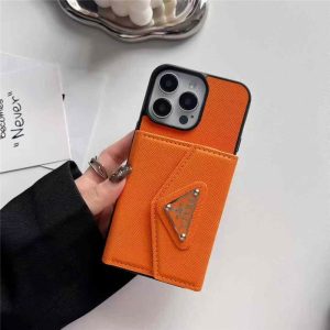 プラダ風iPhone17/17proケース。アイコニックな三角プレートをあしらい、シンプルで洗練されたデザインはシーンを選ばない!アコーディオンカード収納付き、カードやお札、小物をしっかり収納!