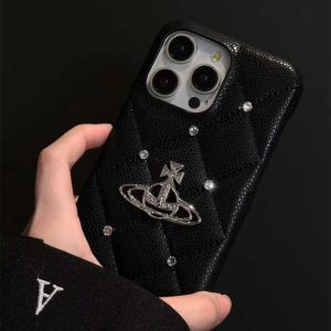 上品なキルティングレザーを使用したヴィヴィアン風iPhoneケース。